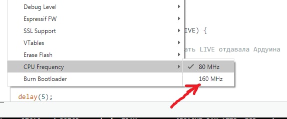 Вопрос: если я выберу CPU Frequency = 160 MHz, это сработает? Частота поднимется в два раза?