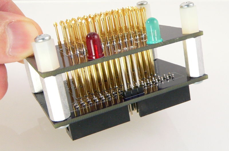 Я читал, еще в обед дали грамотное решение, а то что хочет ТС, выглядит действительно странно. Зачем этот огород, ради того что бы прошить чип не на плате, а на программаторе? Какой выхлоп? Экономия в чипе? Типа разобрал и в коробочку? Если таких плат с десяток, это превращается в лютый геморой, потому как эти кастомные решения нужно будет применить для каждой платы, надежность такого решения в разы хуже чем простая пайка чипа... Повторяемость вашего, лишнее отпилить, тоже будет не айс... Но как говорится, умолкаю.... Жаль мы не услышим (увидим) результат сего ваяния...