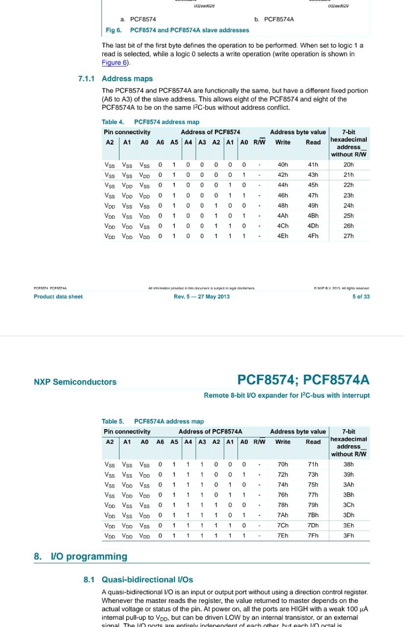 и 8574 - 8 портовый, а 8575 - 16портовый, странно руководствоваться одним датащитом на разные микросхемы. И датащит я привёл именно от 8575