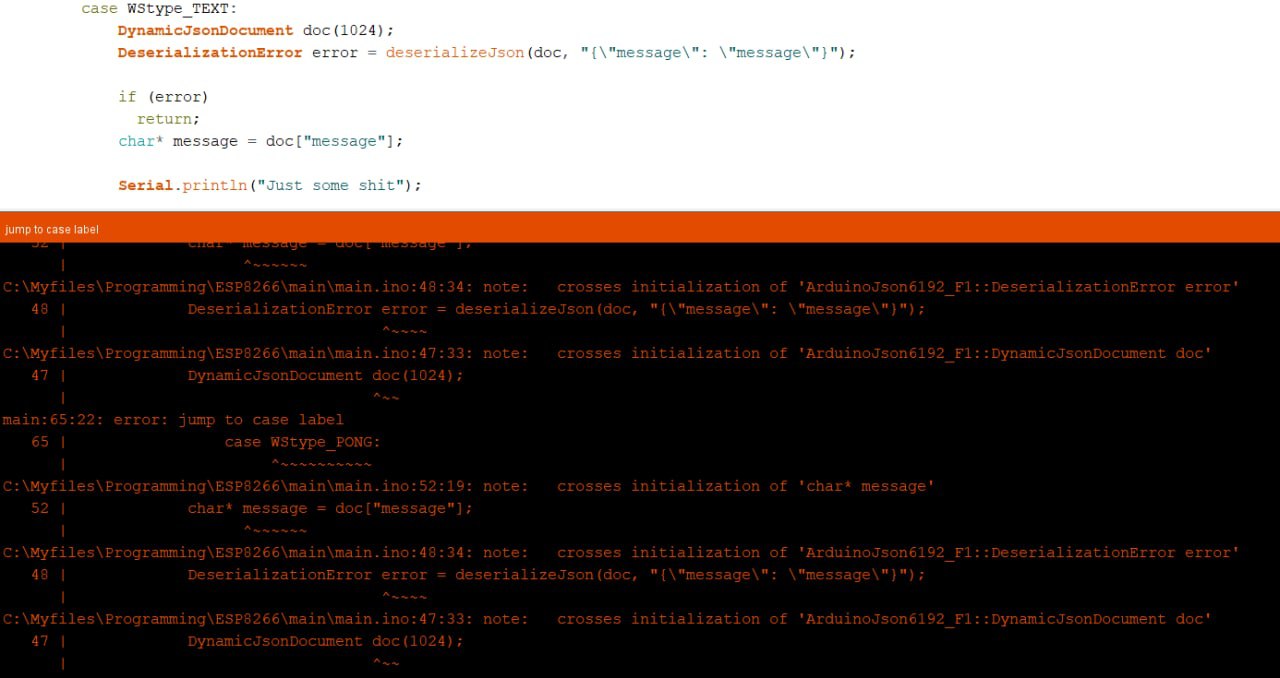 C:\*********\******\main.ino:47:20: note: crosses initialization of 'String jsonResponse'