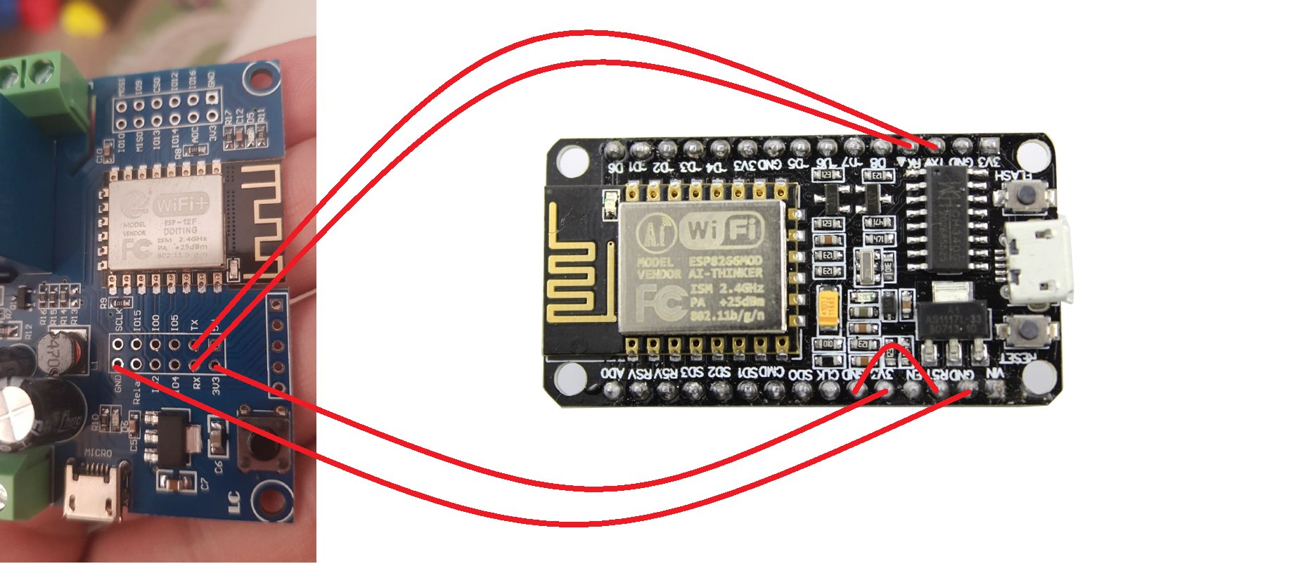 EN платы посадил на 3.3 вольта, RST на GND, на модуле IO0 посадил на GND