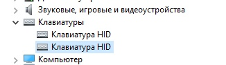 Две клавиатуры в диспетчере устройств. Пробелы удваиваются как то рандомно