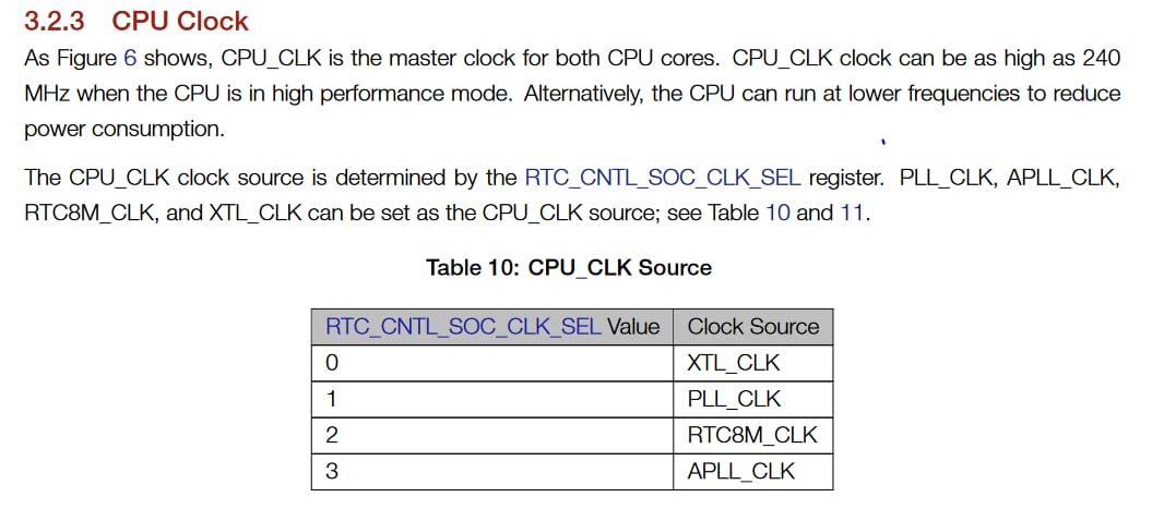 посмотри /esp-idf/components/esp_hw_support/port/esp32/rtc_clk.c