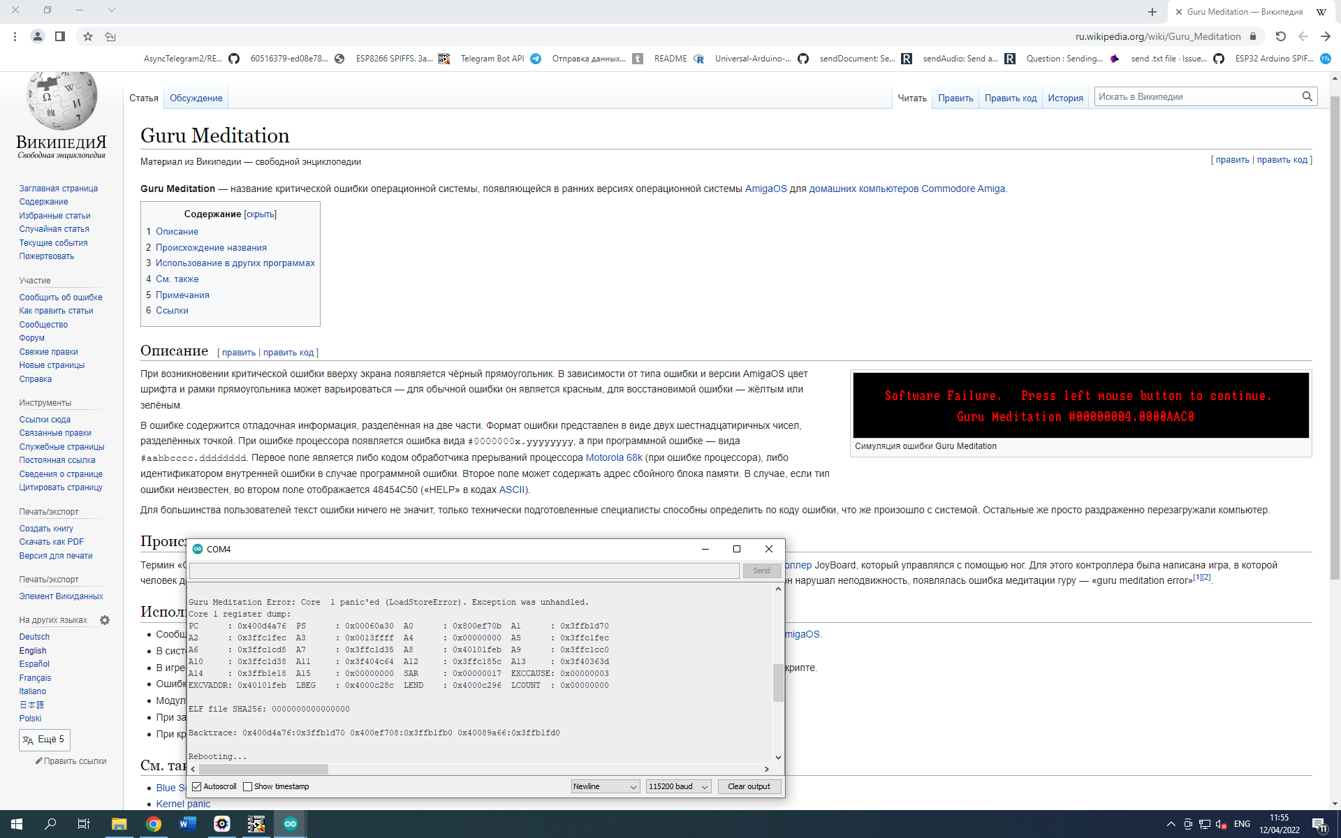 Забавно в ЕСП32 ошибку назвали "гуру медитации" как в компьютерах комоддор)