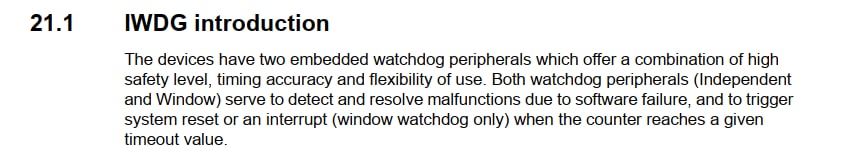 The devices have two embedded watchdog peripherals which offer a combination of high