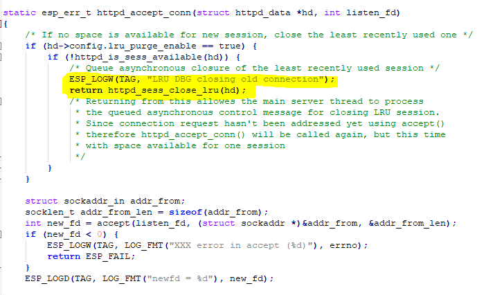 Доброе утро. Попробуй esp_err_thttpd_sess_update_lru_counter(httpd_handle_thandle, int sockfd)