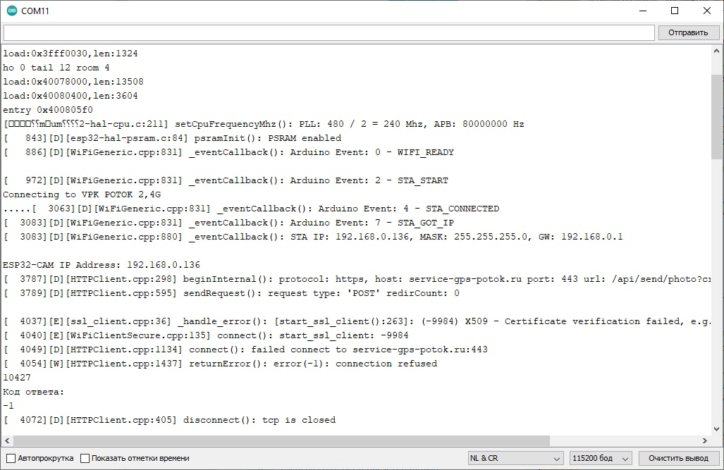 В диагностике почетуо при отправке даных по https идет ошибка. пишет -1 в документации пишут внутреняя ошибка wifi