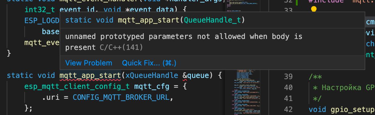 больше интересует как в vscode настроить процесс сборки, espressif поставил, сборку в контейнере настроил, но сцуко чё так тупит всё