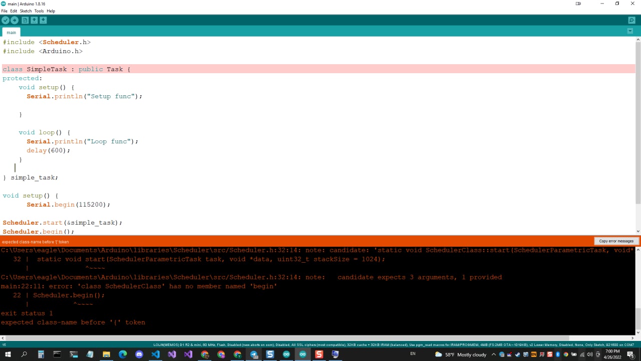 тогда мне предложили использовать FreeRTOS но судя по всему его невозможно использовать на esp8266, получаю ошибку Error compiling for board LOLIN(WEMOS) D1 R2 & mini, если возможно расскажите как, если нет все-таки что делать с основной проблемой