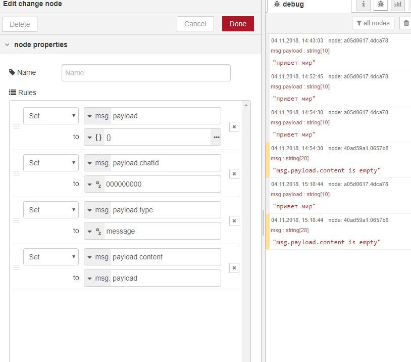 пытаюсь первый раз разобраться с node-red всю голову сломал. Вроде простые вещи а не выходит. сори за нубские вопросы сразу.
