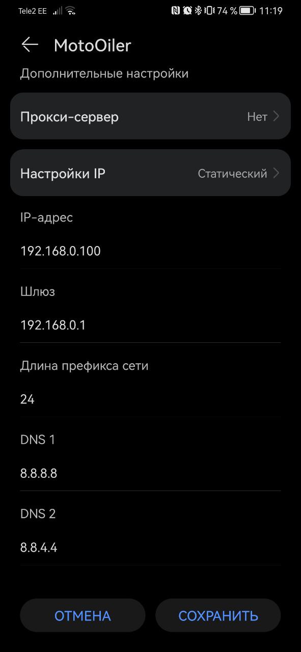 Попробуйте статический адрес 192.168.4.2 сделать.