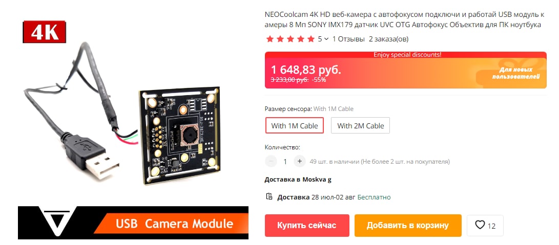за 2 есть fpv камеры на fhd... кажется даже на 4 к где-то встречал