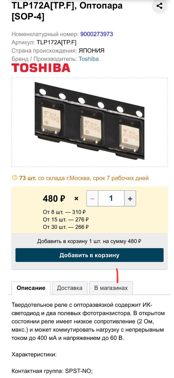 Подскажите, есть такая задача, нужно отправить человеку контроллер для ворот, контроллер должен быть очень маленьким, вопрос таков: хочу попробовать в роли замыкающего контакта представленную оптопару, важна ли на выходе полярность? На сайте амперка готовый модуль с выходом без полярности. Логика у ворот обычно 12-24 вольт, у представленной оптопары до 60 вольт, и нагрузку выдержки ли? Обычный модуль реле арбутинов не предлагайте, большие габариты, возможно есть альтернатива с маленькими размерами?