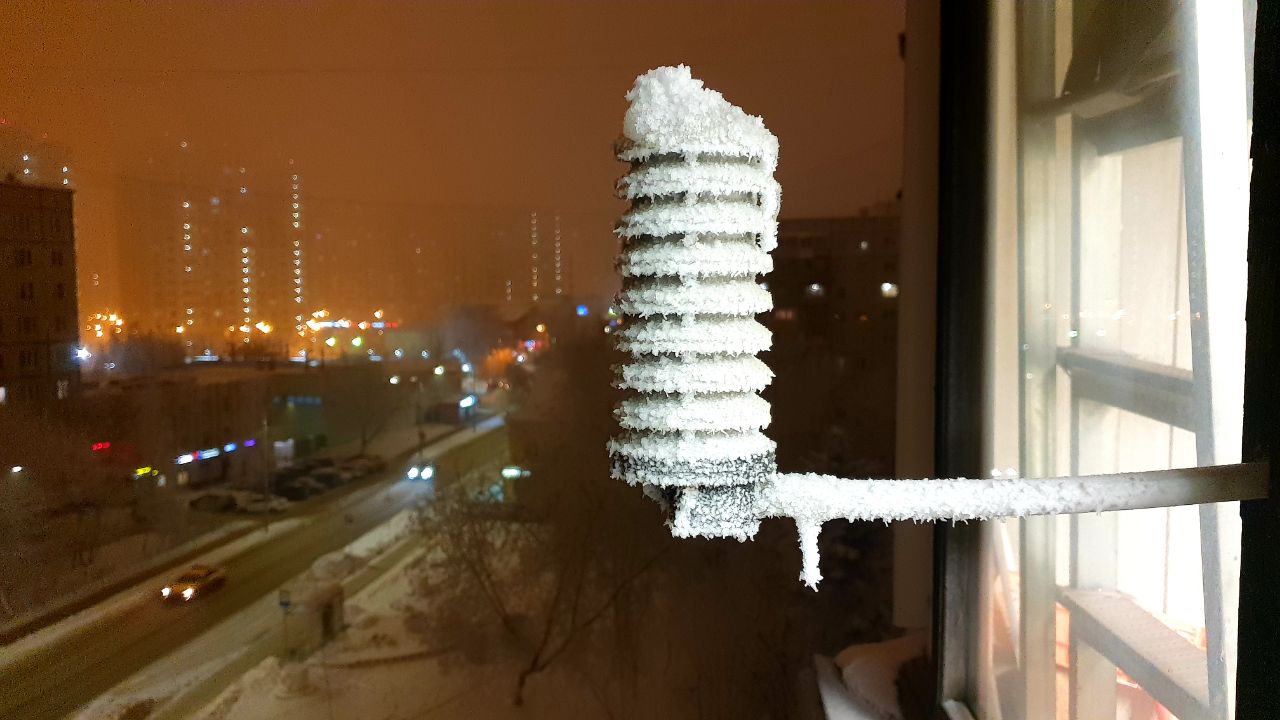 Батарея A4++, aккум Lipo 5000мА, замой в редкий солнечный день оттаивает, потом обмерзает, потом покрывается снегом. Стоит на не отапливаемой лоджии. Очистка от снега 1-2 раза в неделю.