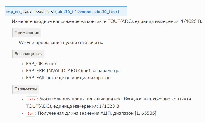 Точно! https://docs.espressif.com/projects/esp8266-rtos-sdk/en/latest/api-reference/peripherals/adc.html