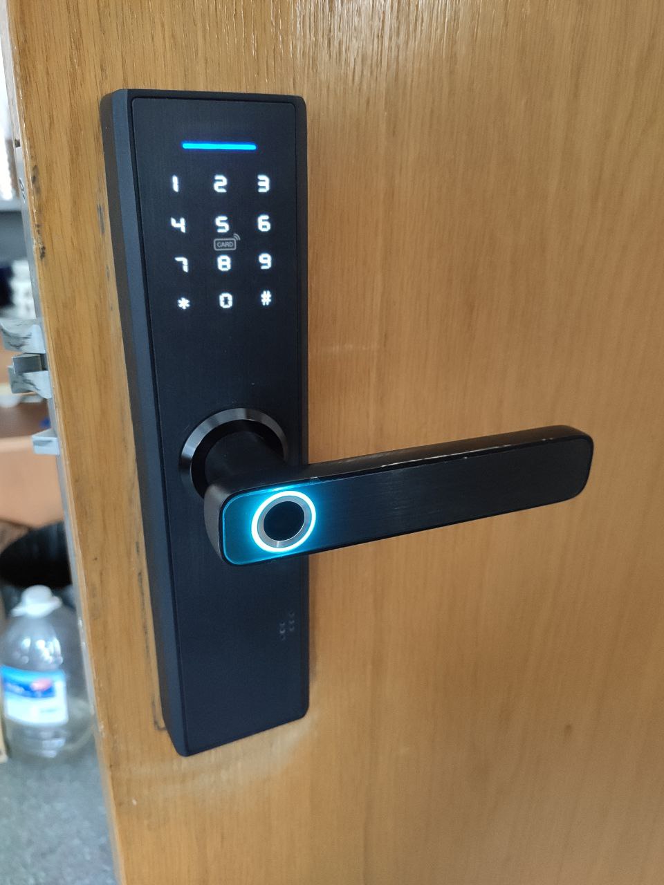 Вот он вживую. Простой, без wifi, открывается пальцем, кодом и RFID