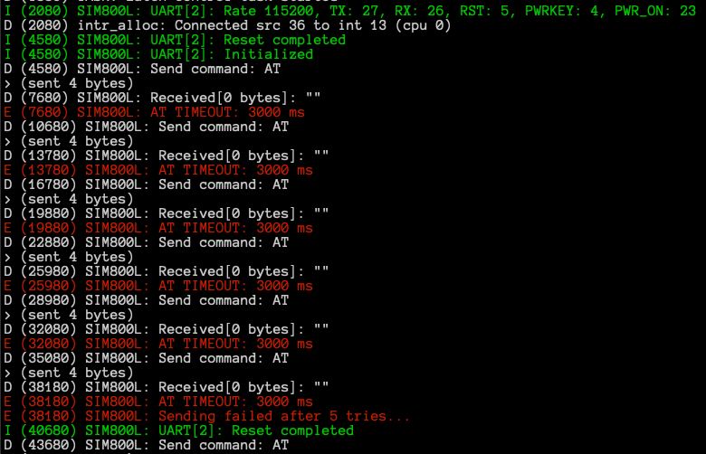 прошивка несколько раз засылает AT и ждёт результат, в ответ тишина