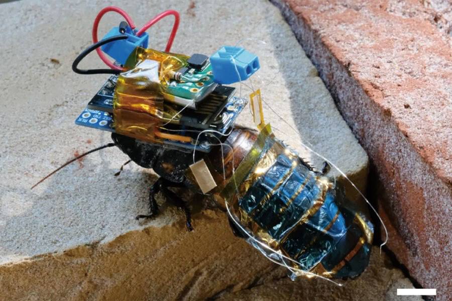 Учёные установили насекомому специальный маленький рюкзачок с модулем управления лапками, а также литий-батарею. И вуаля — управляемый таракан готов.