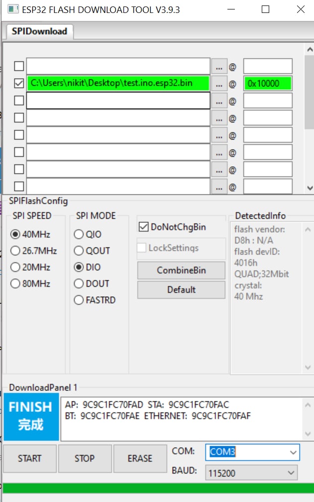 а у кого-то есть ссылка на видео, как прошить esp32 bin файлом из ардуино иде ?