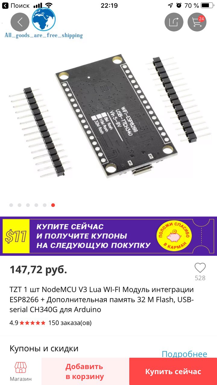 Сегодня esp приехала с китая на плате вместо 4 мб памяти 32 мегабайта