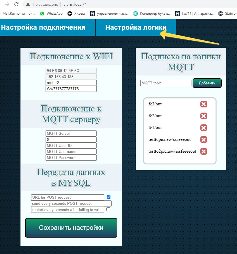 вопрос номер два)) куда чего смотреть не знаю. с какой стороны подойти тоже не знаю пока) как закончу с mysql нужно будет оживить вкладку логика. в esp в ram будут около 20-30 параметров. они будут постоянно меняться. мне нужно в рантайм редактировать и выполнять простую логику. типа если x1>x2 то активировать такой то пин. или если x2>2000 но меньше 10000 то выключаем пин. список переменных которые изменяются- известен. как бы вы это сделали. реализацию логики. может что путное скажите