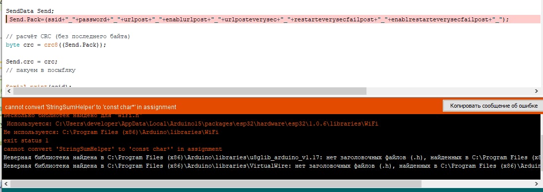byte crc8(String stringData) и byte crc = crc8((Send.Pack)); - const char * так вообще можно?