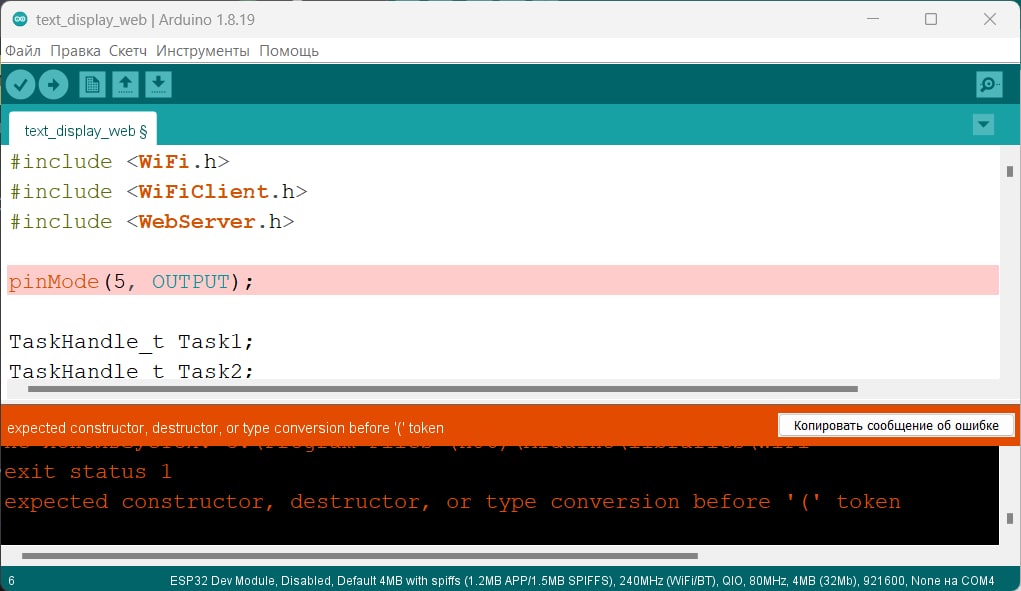 Не совсем понял, чего он хочет. Вроде все без ошибок написал. Плата esp32