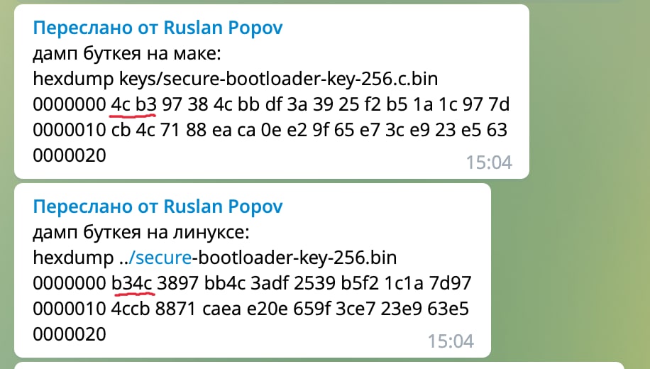 образ защищённого загрузчика собирается именно с этим ключом и записывается правильно