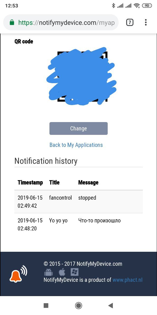 Установил приложуху notify my device. На сайте зарегился, он выдал идентификатор, и далее лёгким движением post запроса шлем нотификации себе в телефон!