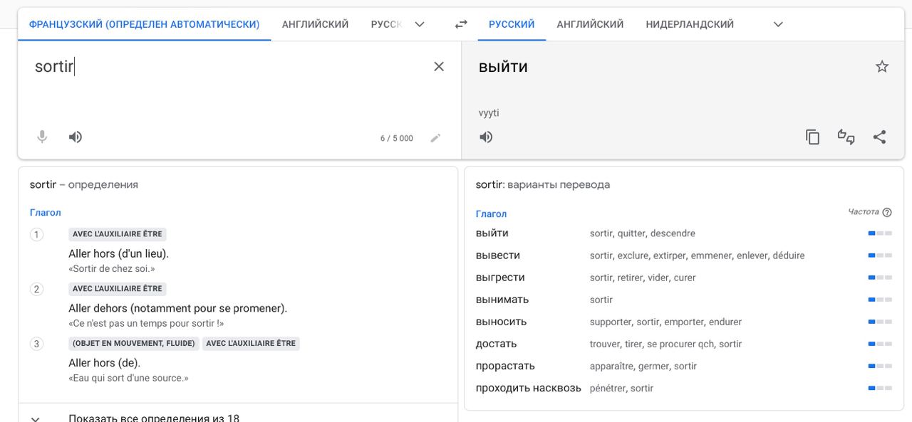sortie -- выход
