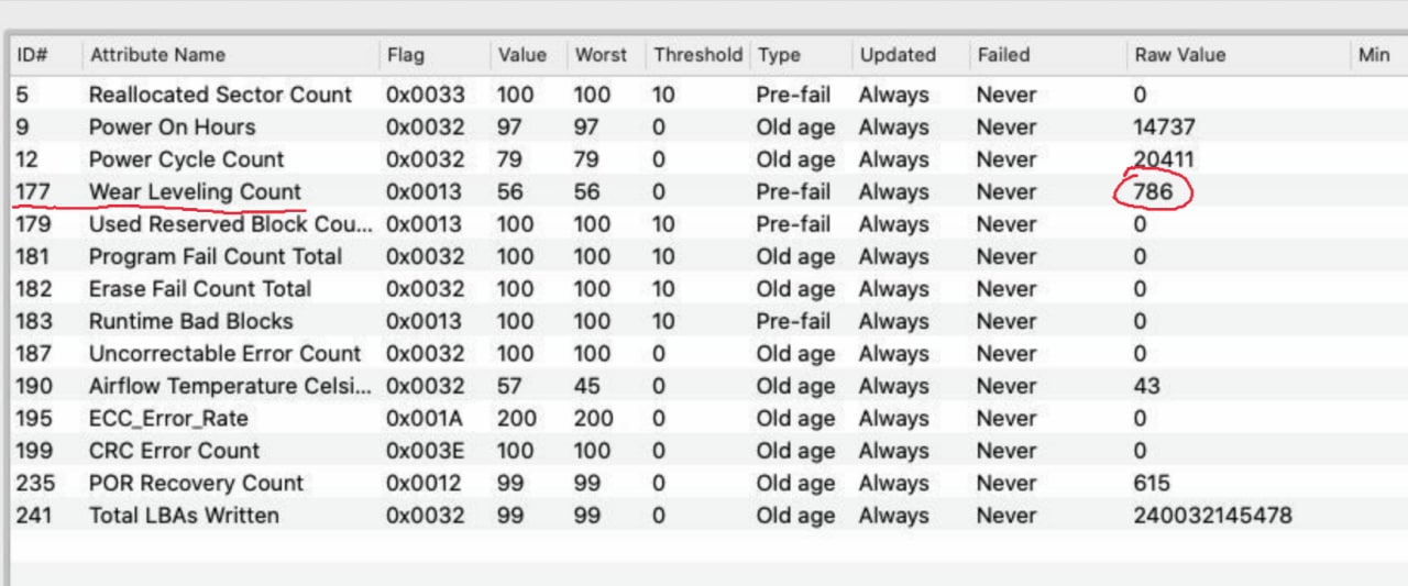 Подозреваю что 786 это полных циклов перезаписи. Но это неточно