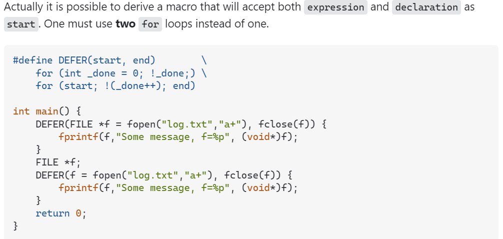 обещают лямбды в Си, может быть дефер через них сделают