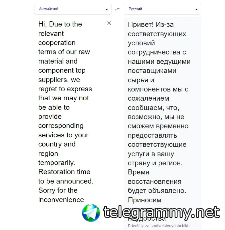 Через 3 дня только высрали ответ на русском