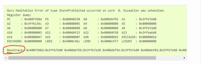 Guru Meditation Error: Core 0 panic'ed (Store access fault). Exception was unhandled.