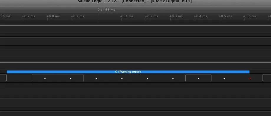 я в логике потсавил скорость пониже в нстройках анализатора - и ошибка ушла, а синяя полоса ушла правее, за фронт справа.