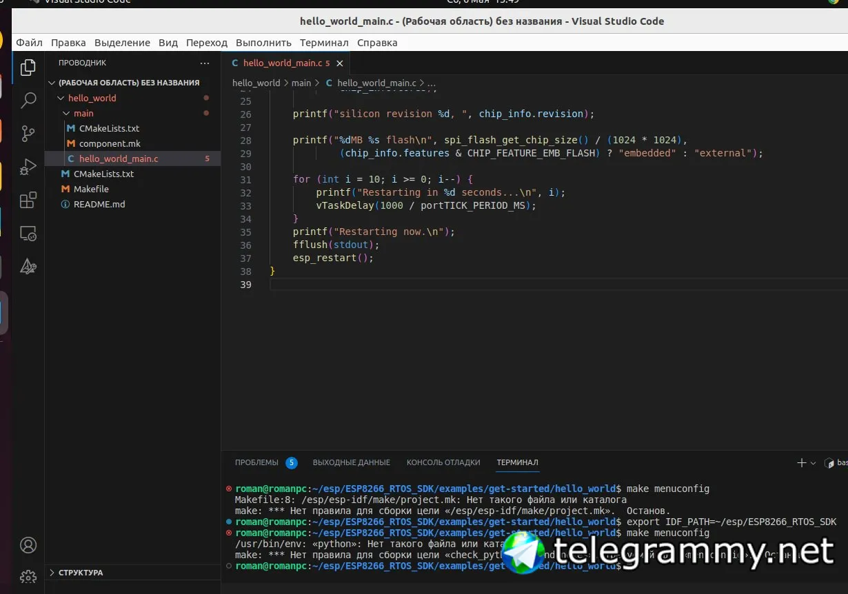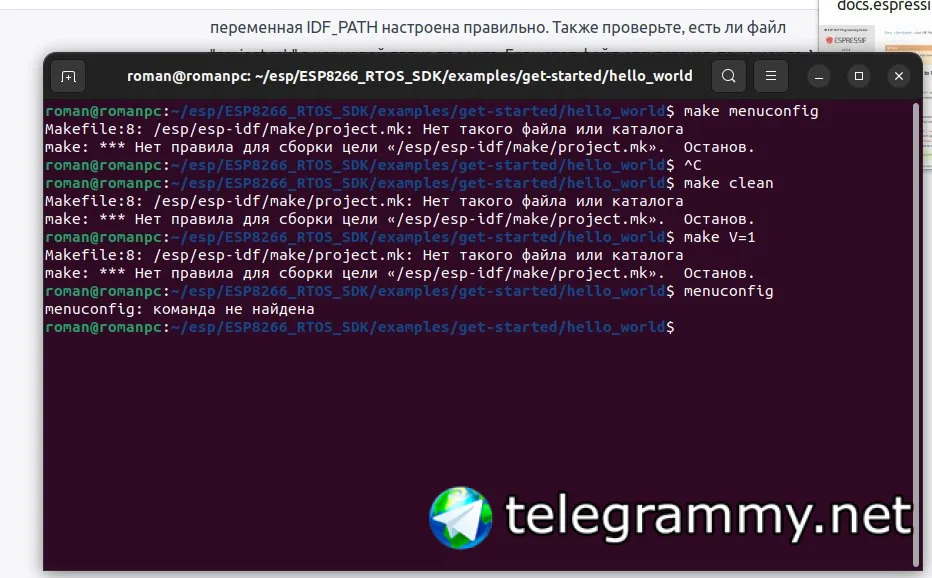 я второй день сижу и не могу понять в чем проблема. повторяю инструкцию с ESP по установке IDF. в момент когда хочу собрать make получаю ошибку. самого файла make в проекте нету. может его нужно самому создать? не понимаю что не так