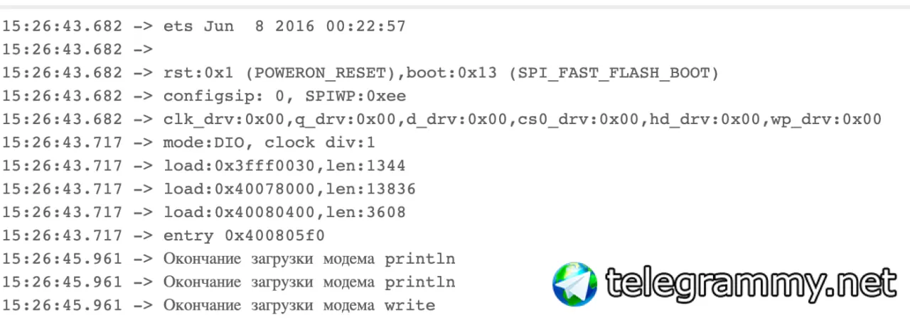 SerialMon.println("Окончание загрузки модема println");