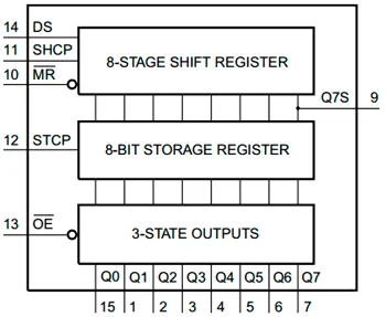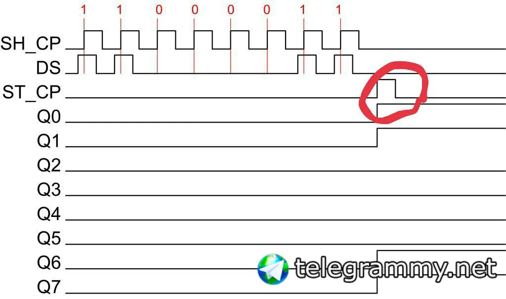 74hc595 записывает в регистры если идут сигналы на 11пин состояние на 14 пине независимо от состояния 12пина.