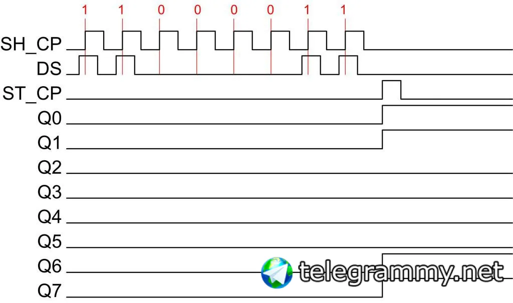 Поэтому разнеся ноги защёлок, можно управлять каждой микросхемой регистра по отдельности, имея для них общий пин тактирования и данных