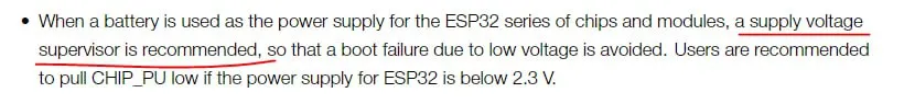 Всем привет. Esp32 не просыпается из дип слип по таймеру, если вовремя дип слип уровень заряда менее 2.6-2.7 вольт, у кого нибудь было такое? И даже после того как аккумулятор зарядиться, пока не нажимать на ресет, есп не просыпается