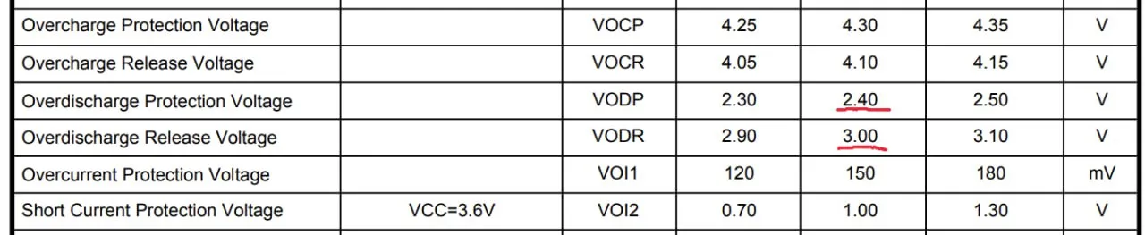 DW01 включается после достижения 3.1 вольта