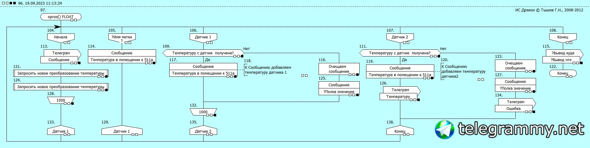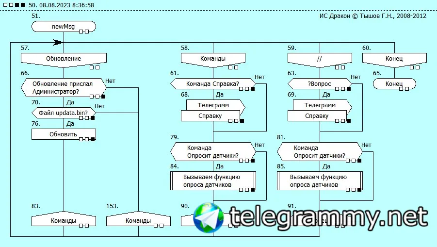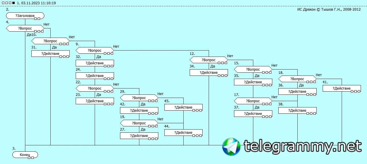 моя история из жизни......пришла мне тут в мою голову идея...Телеграмм бота...для бизнес процесса(для канторы...в которой я работаю..) я не программист.... 👹я инженер МЕХАНИК!!!!!!👹 теперь понятно!!!! ................................................................................ как я общался со специалистами МИНЦЫФРЫ?????.............................................ДА_А_А Блок схемы КАРЛ....БЛОК мать их за нагу СХЕМЫ...... и у специалистов из МИНЦЫФРЫ по моей оснавной идеи вопросов особо небыло....потому что понятно и мне МЕХАНИКУ и им ПРОГРАММИСТАМ..... а теперь представь что ты разрабатываеш алгоритм совместно с заказчиком ПО.....не важно какого и для чего....ТЗ В алгоритме и тебе понятно и ему................. вот применение ДРАКОН схем.....а стесьняться этого выходит боком как тебе(непонятки с заказчиком) так и заказчику....разные отрасли, разные термины, про менеджеров, бухгалтеров.....вообще молчу........