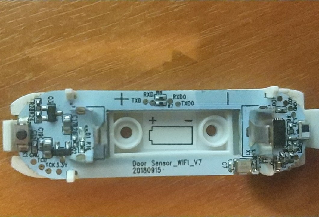 ну вообще все не так просто, а совсем не просто. тут стоит "сопроцессор", который отрубает питание у esp, обеспечивая тем самым длительную работу от батареи, а включается esp только при срабатывании , чтобы отправить сообщение и снова "заснуть" - быть обесточенными. Протокол их взаимодействия до конца не раскрыт (я не нашел), есть частичное представление и многостраничные дискуссии на гите. Что туда прошить годного... :( Как прошить понятно - подвести питание в напрямую, но как эксплуптировать потом.