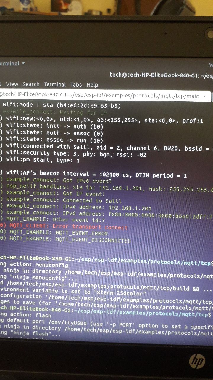 In esp idf example code after entering cloudmqtt authentication