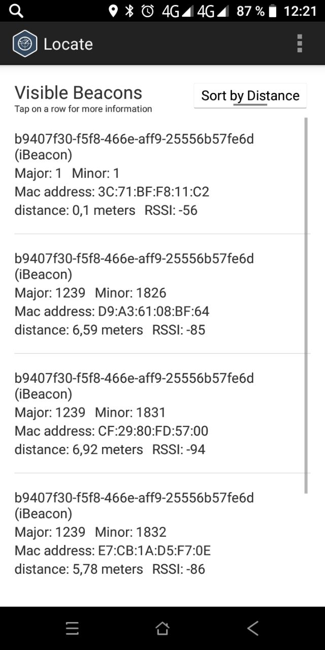 Или вещать раз в 10 секунд. С такой мощностью приложение справиться и найдет метку на таком растоянии.
