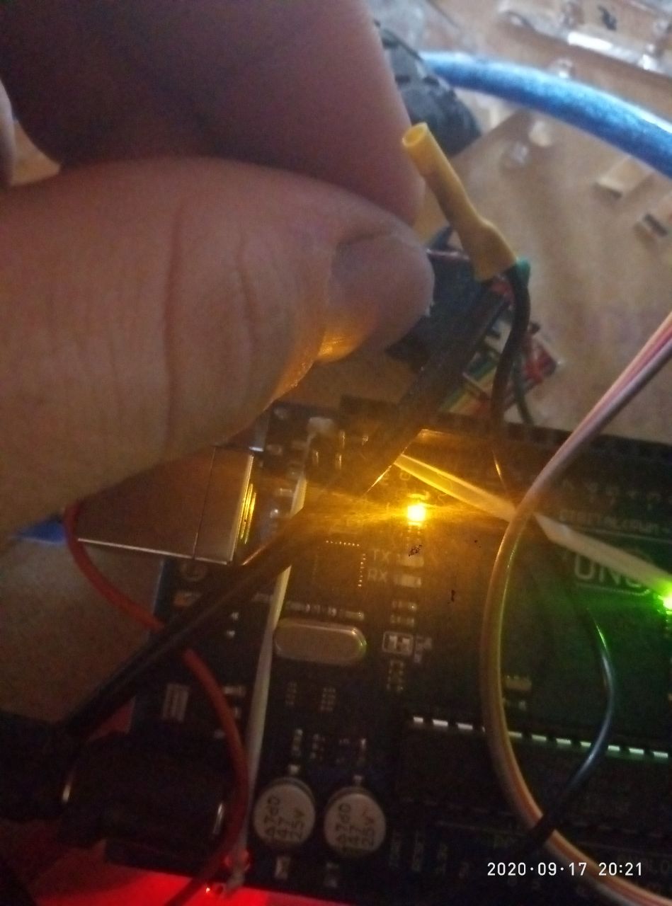 А должен гореть светодиод rx или tx?