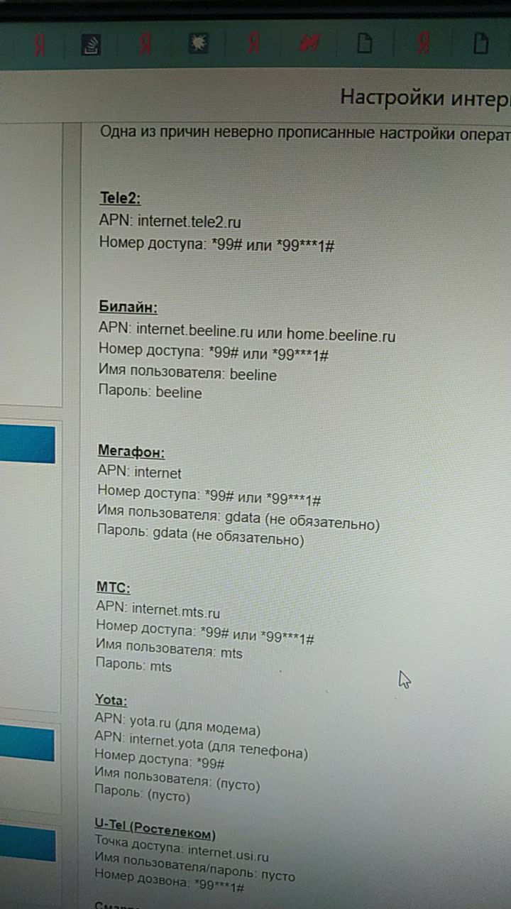 там приходит сервисное сообщение, попроси оператора прислать настройки и смотри что приходит