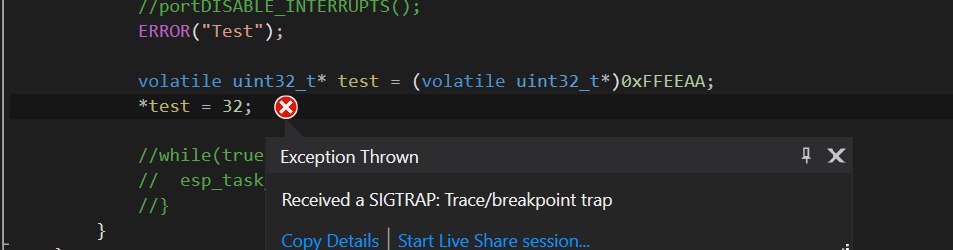 Выше упомнули panic.c, в нем есть abort() с asm break. Но я пока не нашел хедер к нему