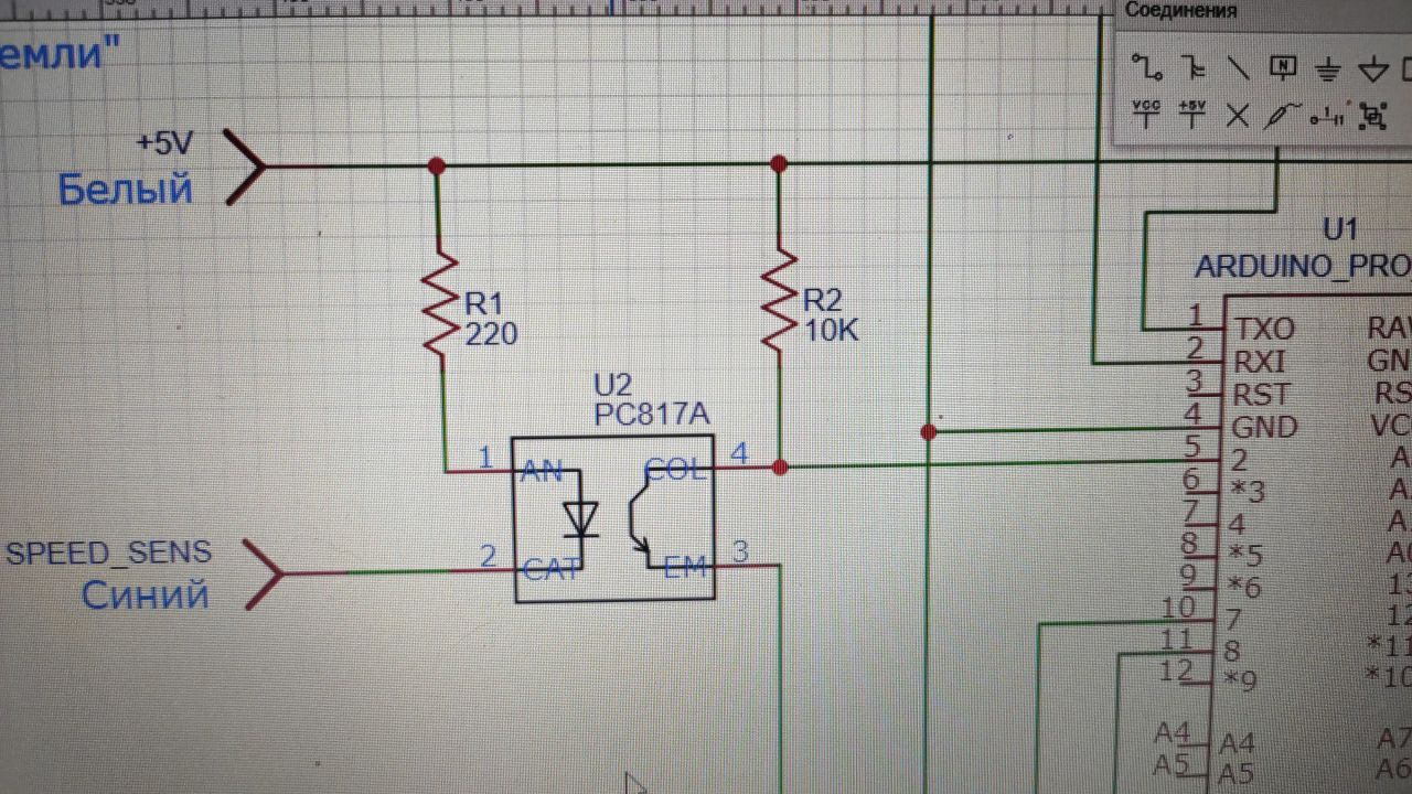Есть ещё вопрос по входу. Получаю сигнал от датчика с открытым коллектором. Возможно это будет просто датчик холла. В общем сигнал - это ноль или земля.