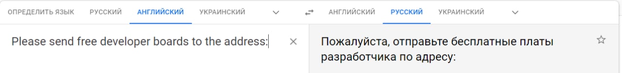 Благодарим вас за интерес к продукции Espressif. Мы отправили вам комплект разработчика ESP32. Номер отслеживания EMS . Пожалуйста, дай мне знать, если возникнут какие-либо вопросы.